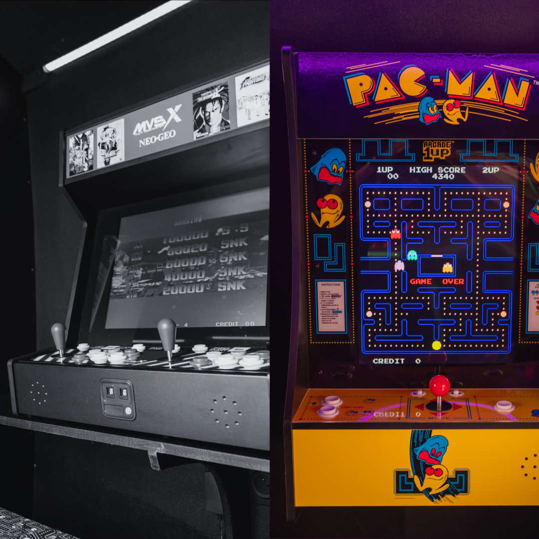 Sélection de bornes d'arcade interactives conviviales, parfaits pour jouer à plusieurs, lancer des compétitions amicales et battre des high scores... du fun garanti !!